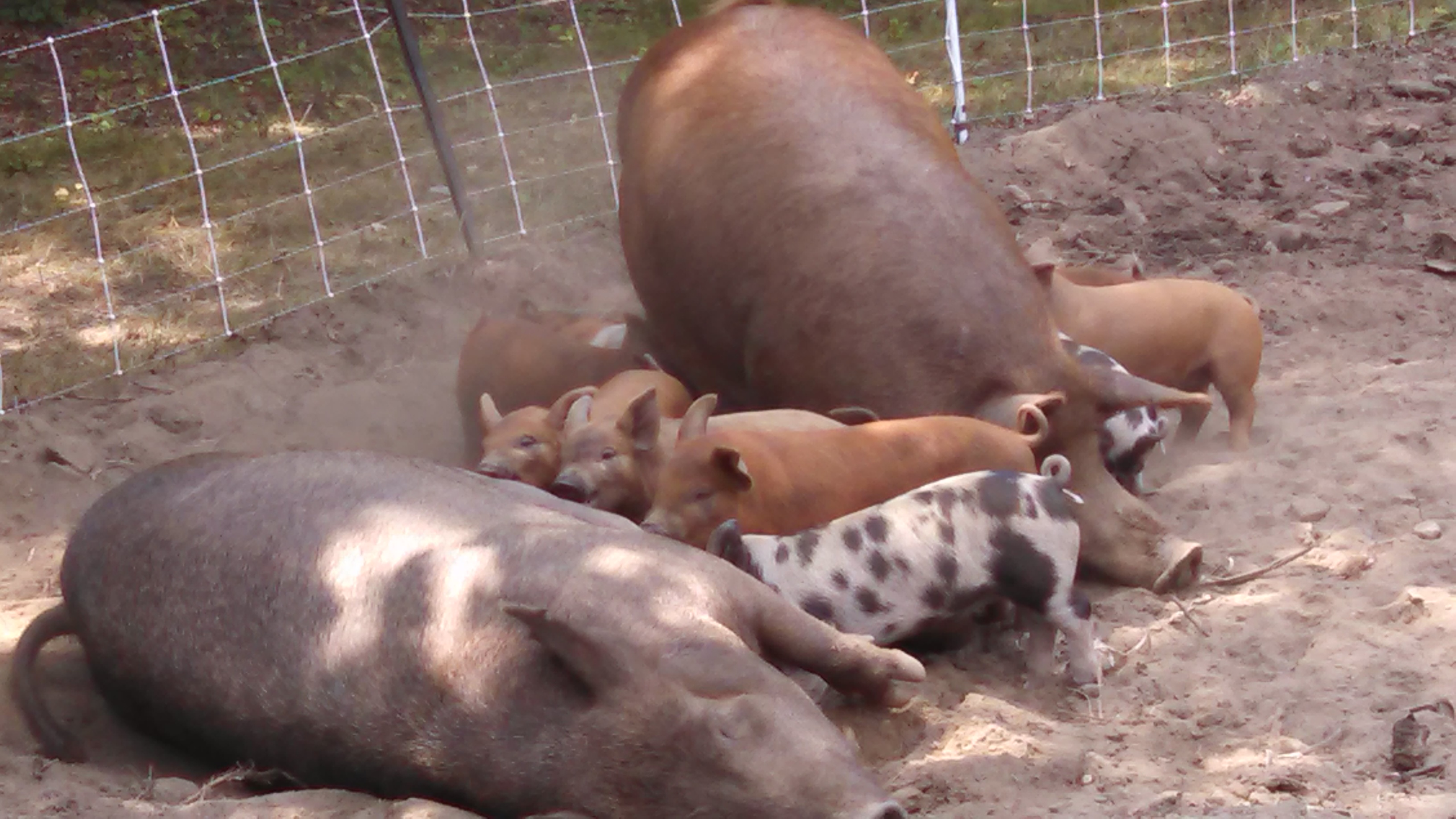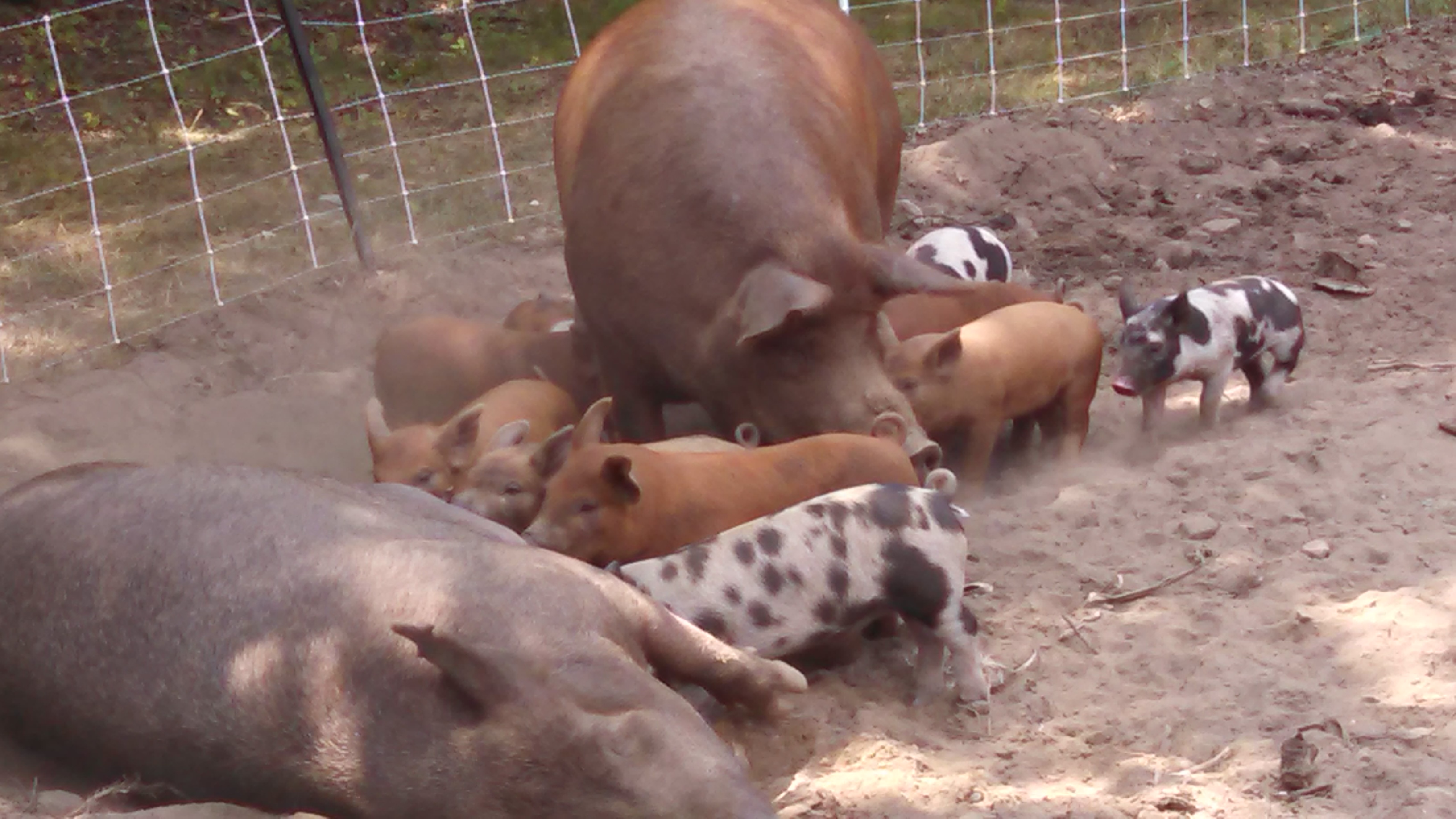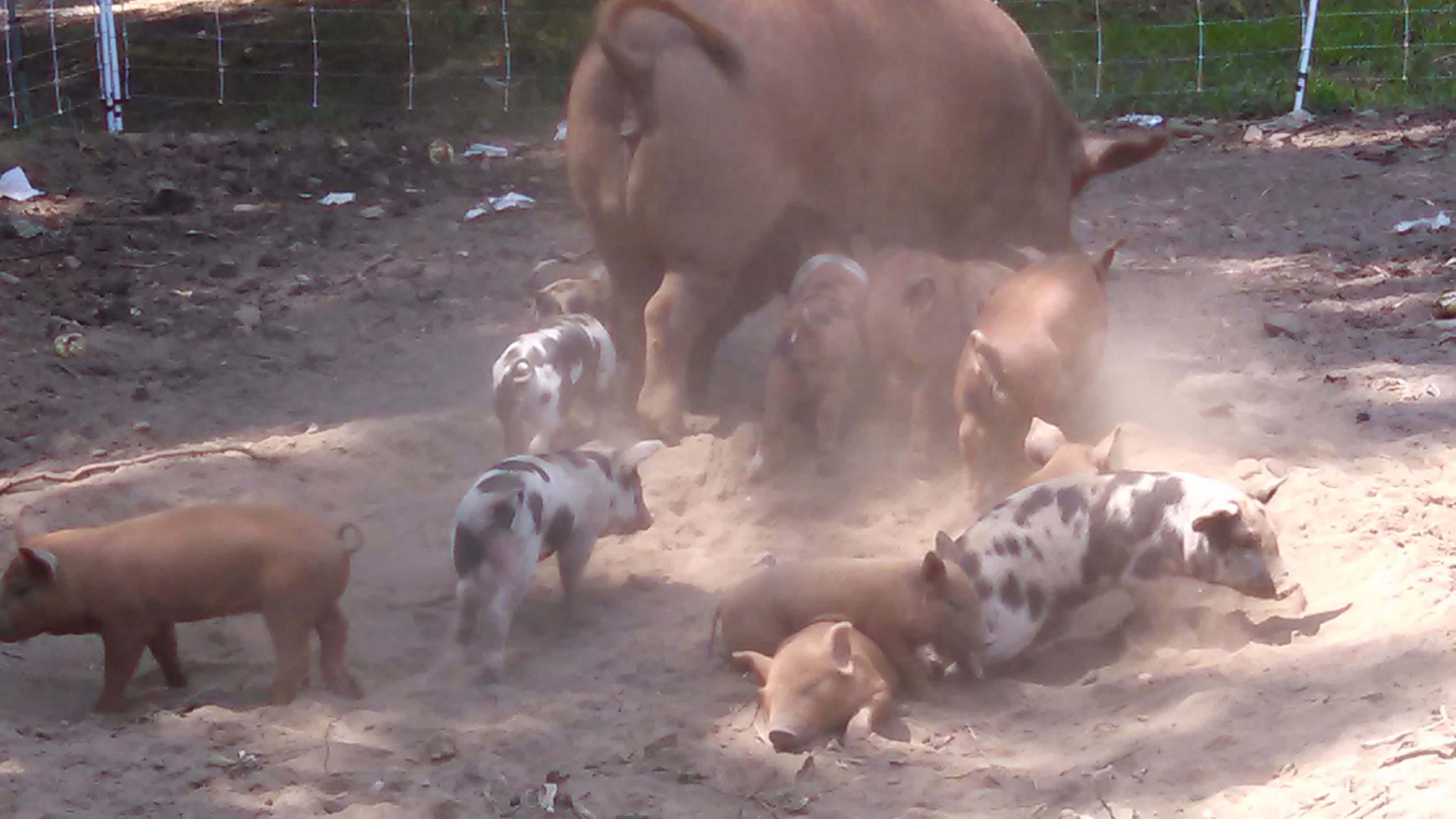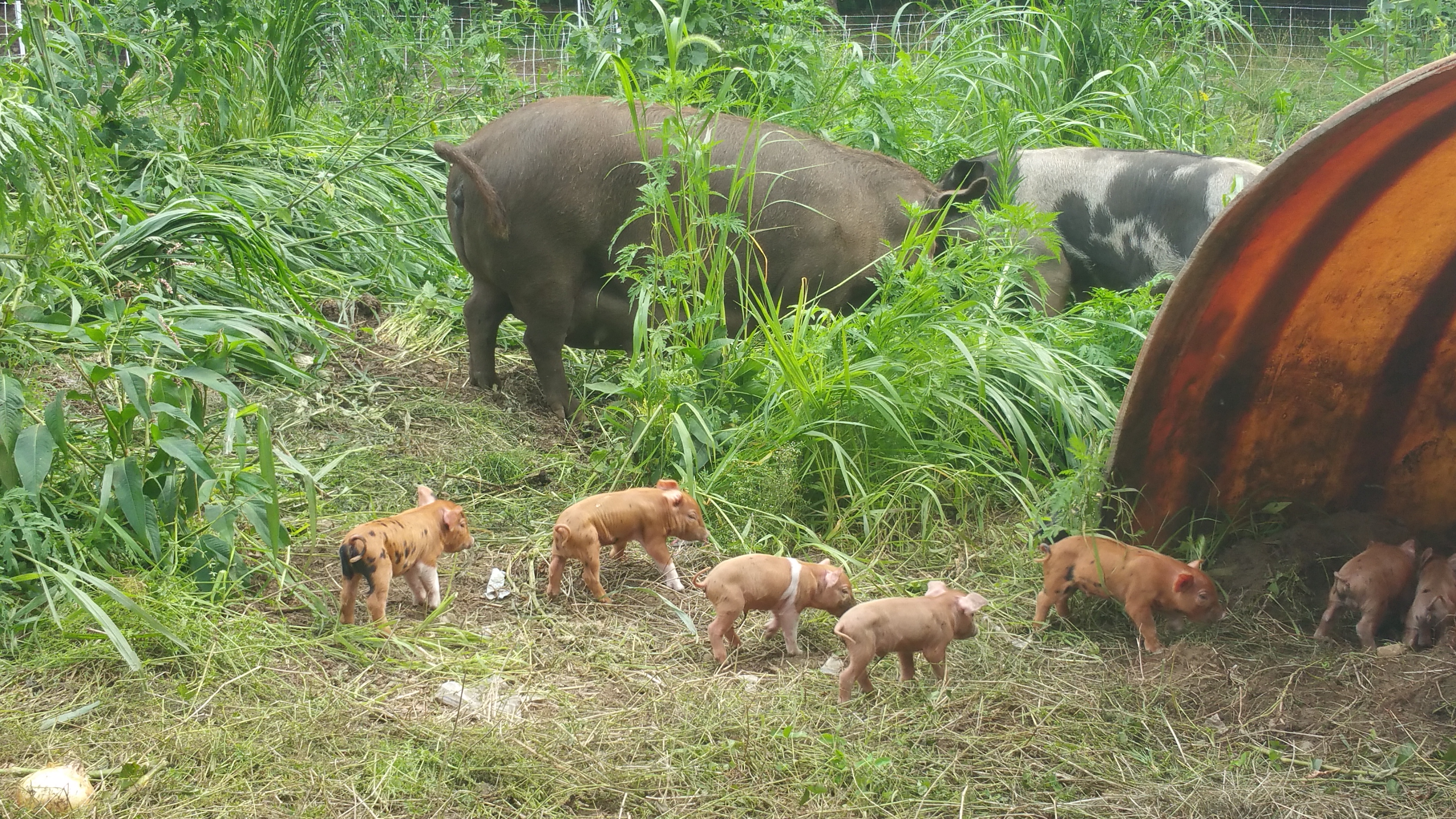 Once piglets are off and running at, ummm birth a few days old, they start to meander on over to wherever there is a good meal. The sows don’t seem to mind and even welcome the respite.
