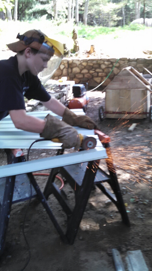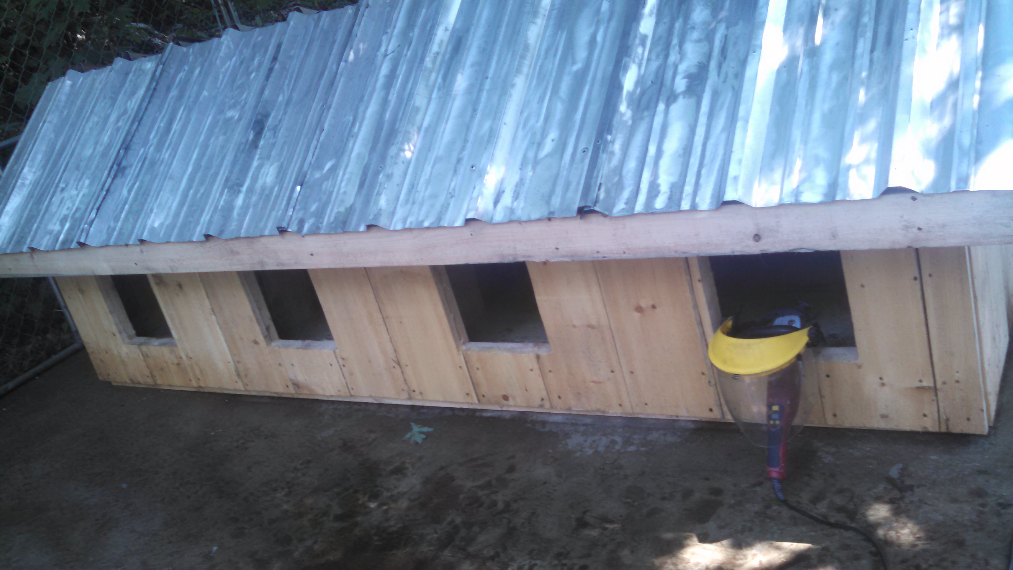 In 2 1/2 days my husband was able to mill and build a beautiful new dog condo and we didn’t pay anything for any of it. We had the metal sheeting dropped off here a couple years ago by someone who thought we’d use it for something eventually, and we had all the screws on hand.