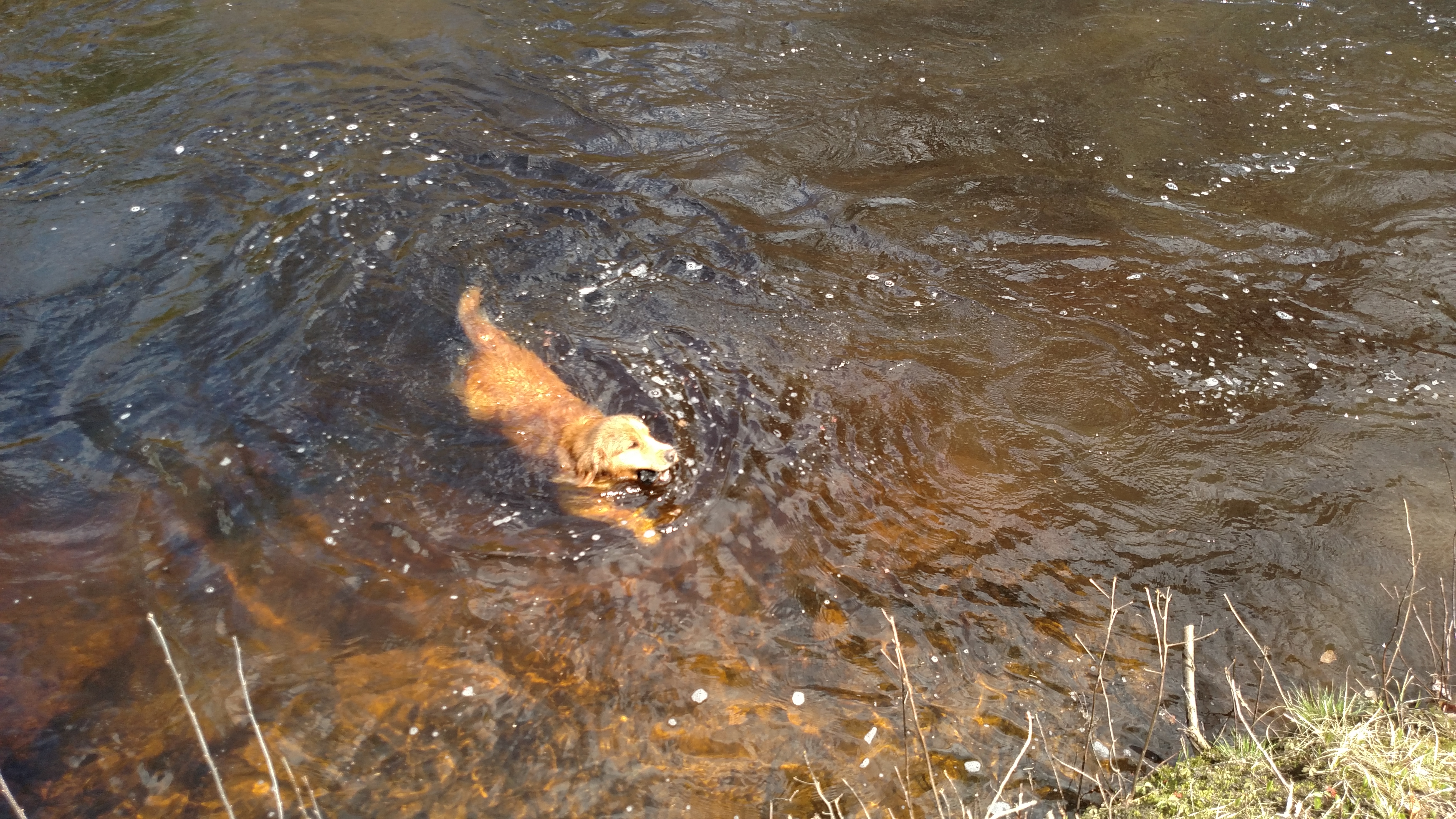We are blessed to have just over 14 acres of land, which is bordered by a river and an old trestle trail. We took an impromptu hike yesterday down to the river. We like to let the dogs take turns going with us. Today was Mal’s turn. This guy cannot keep out of the water! Even when it’s frigid! I had so much fun watching him jump into the river time and time again to retrieve the sticks the kids kept throwing for him. Of course I wasn’t thrilled when he decided to take a lovely dust bath after his swim, but he certainly loved it!