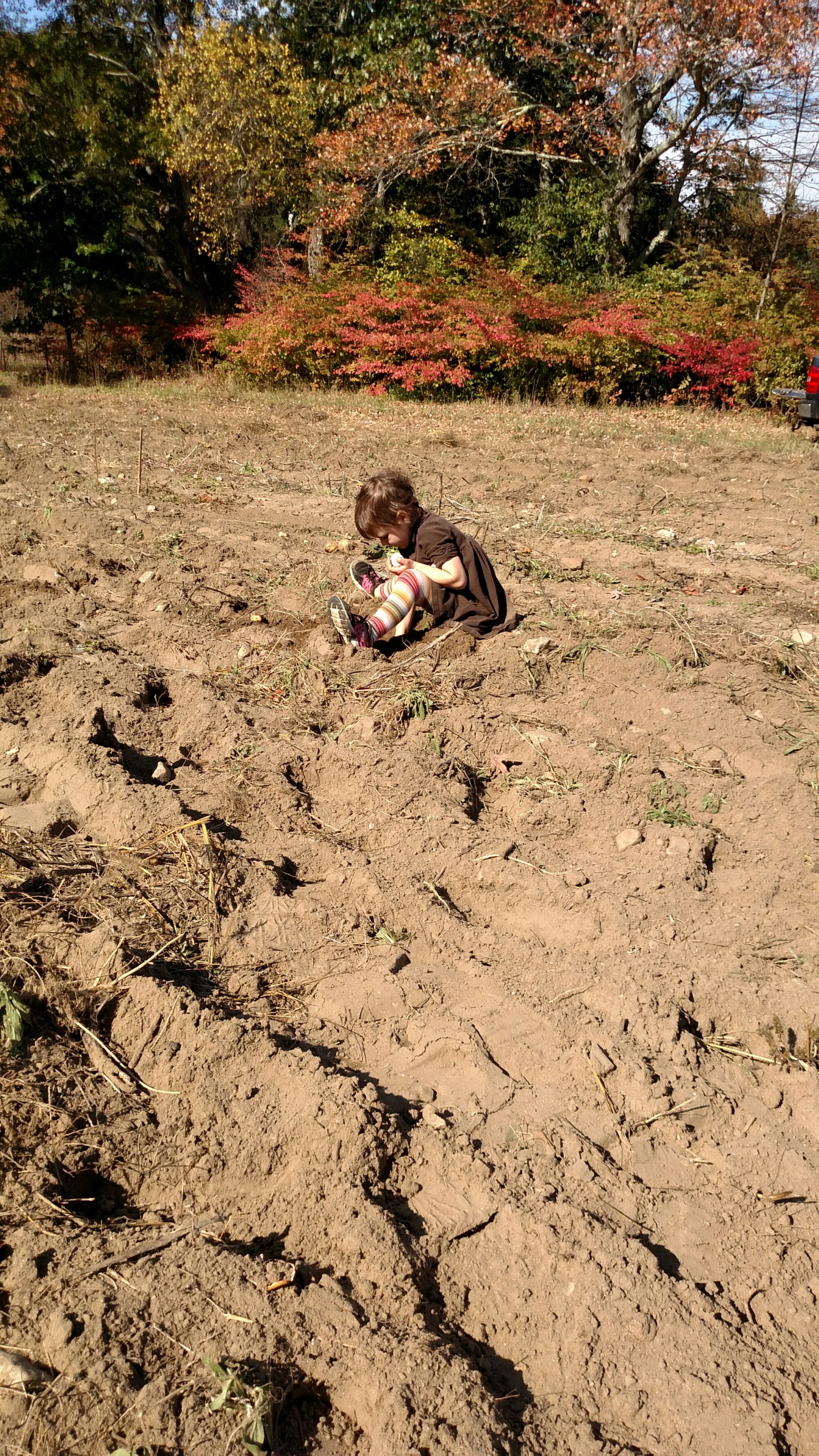 What does the 4 year old do when digging potatoes?