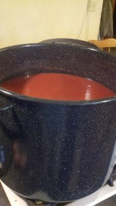 Stephanie, we picked up a turkey fryer and use that to boil down our tomato sauce. Avoids heating up the house and the pan is huge. You know those turkey fryers that go out side.