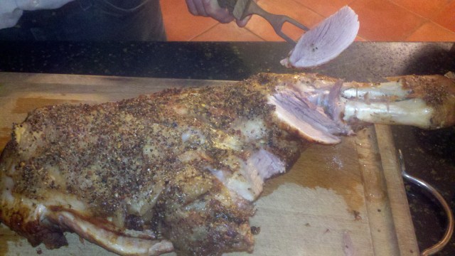 The day the storm hit we butchered one of our pigs. We left him to hang overnight as the weather was bad and it was getting too cold and wet to continue. Our friends at Morningstar Meadows Farm invited us over to watch the Steelers game and I offered to bring some food with us…. figuring we’d all share leftovers (which we did) and my husband went out and cut a shoulder off the front of the pig to bring. Oh My! Soooo good! I keep saying it’s all about the food and you know… it really is!!