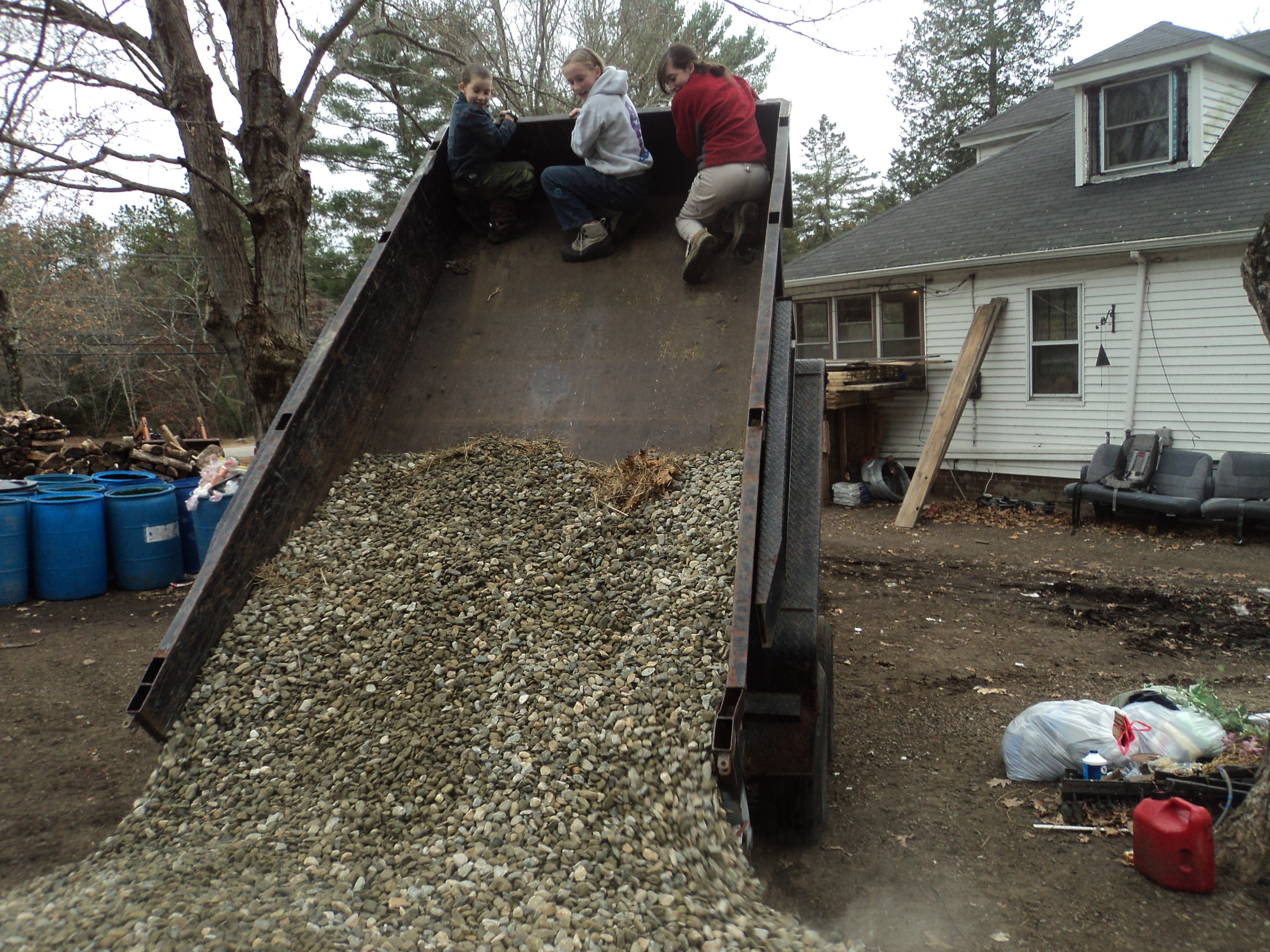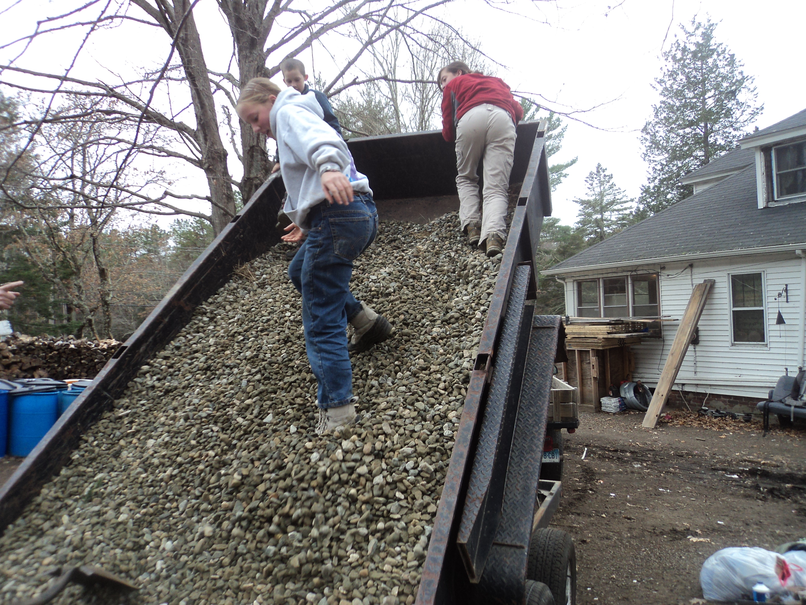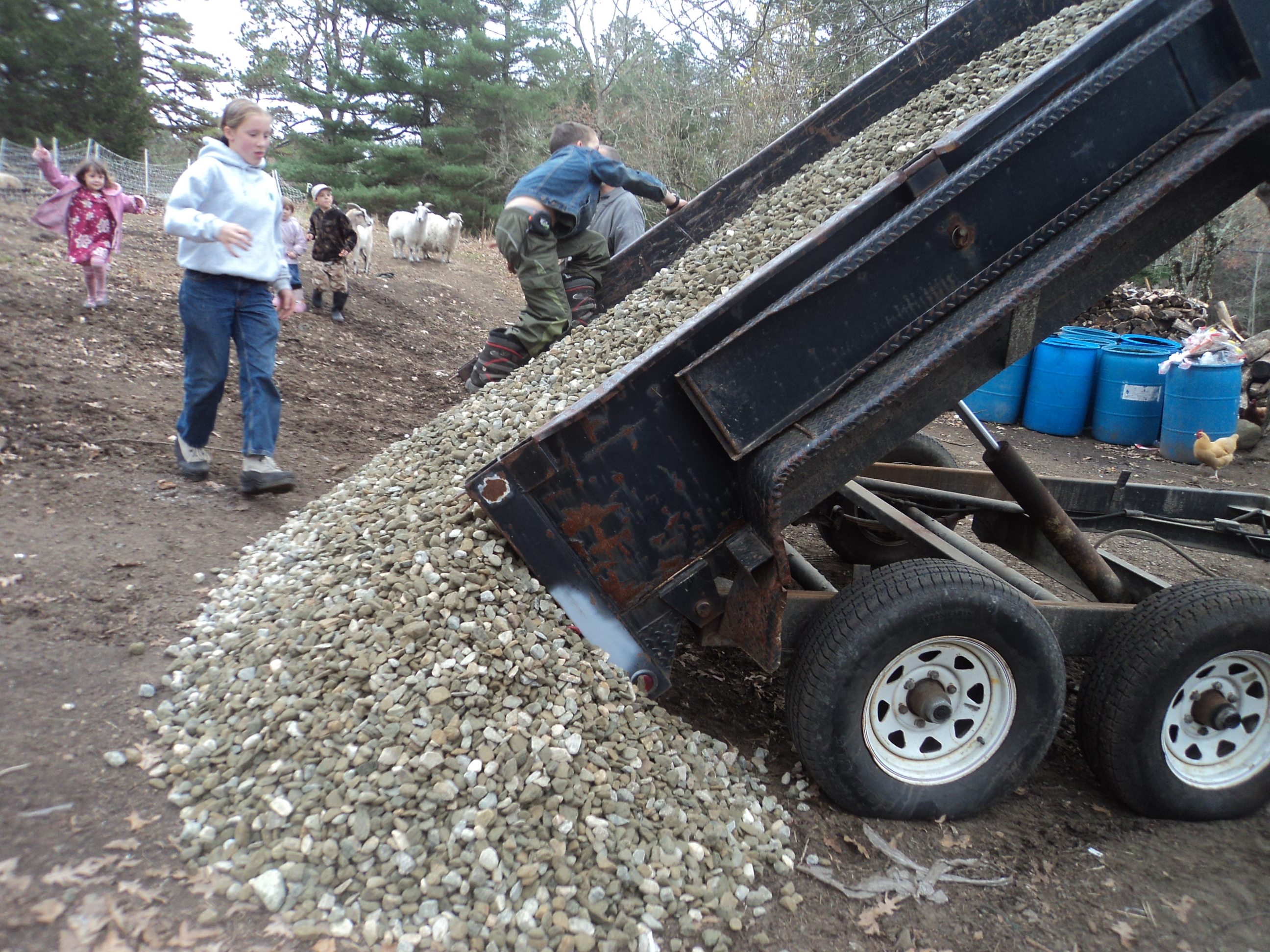 Dumping the stone… but the trailer is still full…