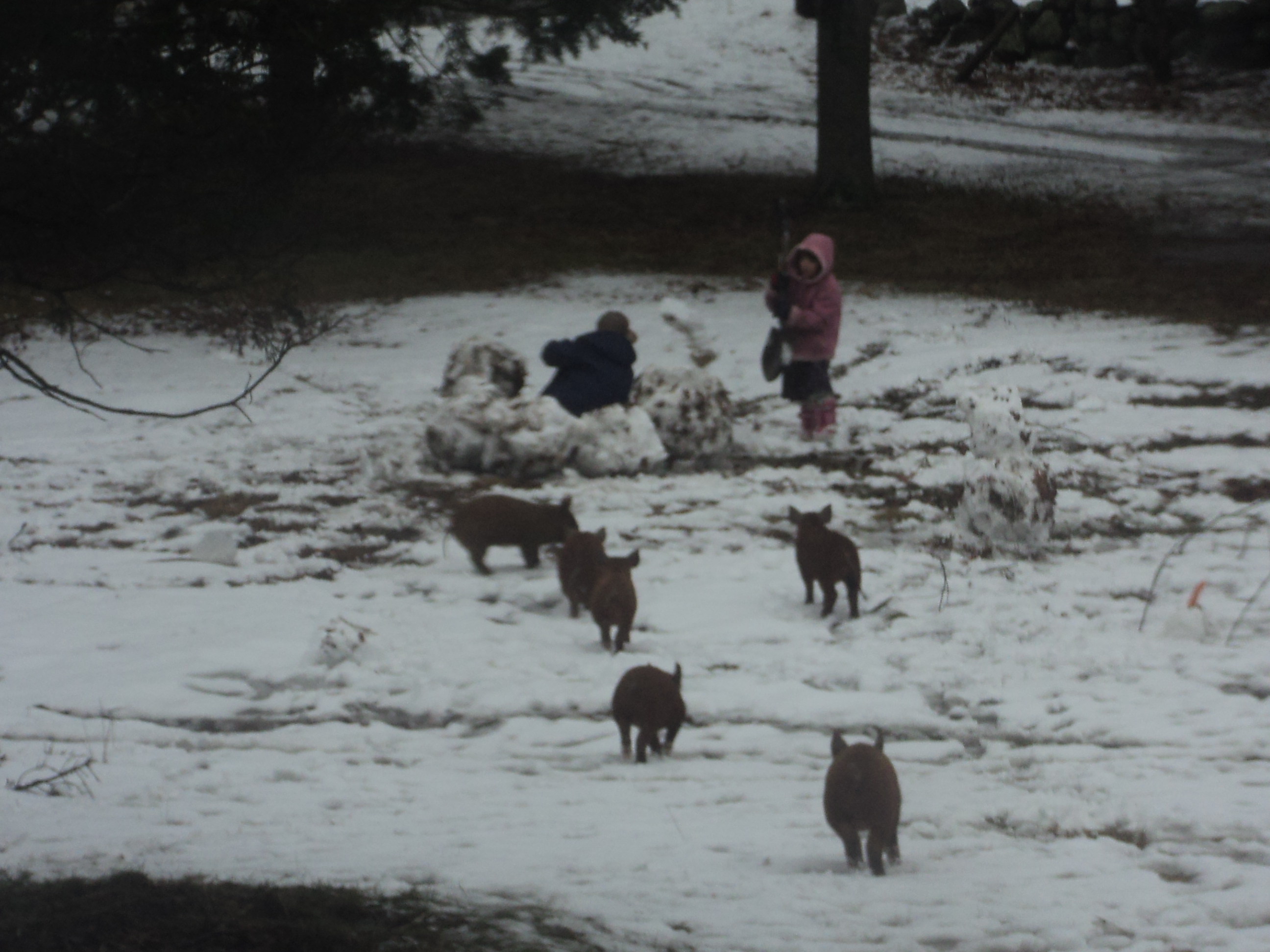 We finally got some snow! Not much but enough for the kids to go out and build some Snow Goons.