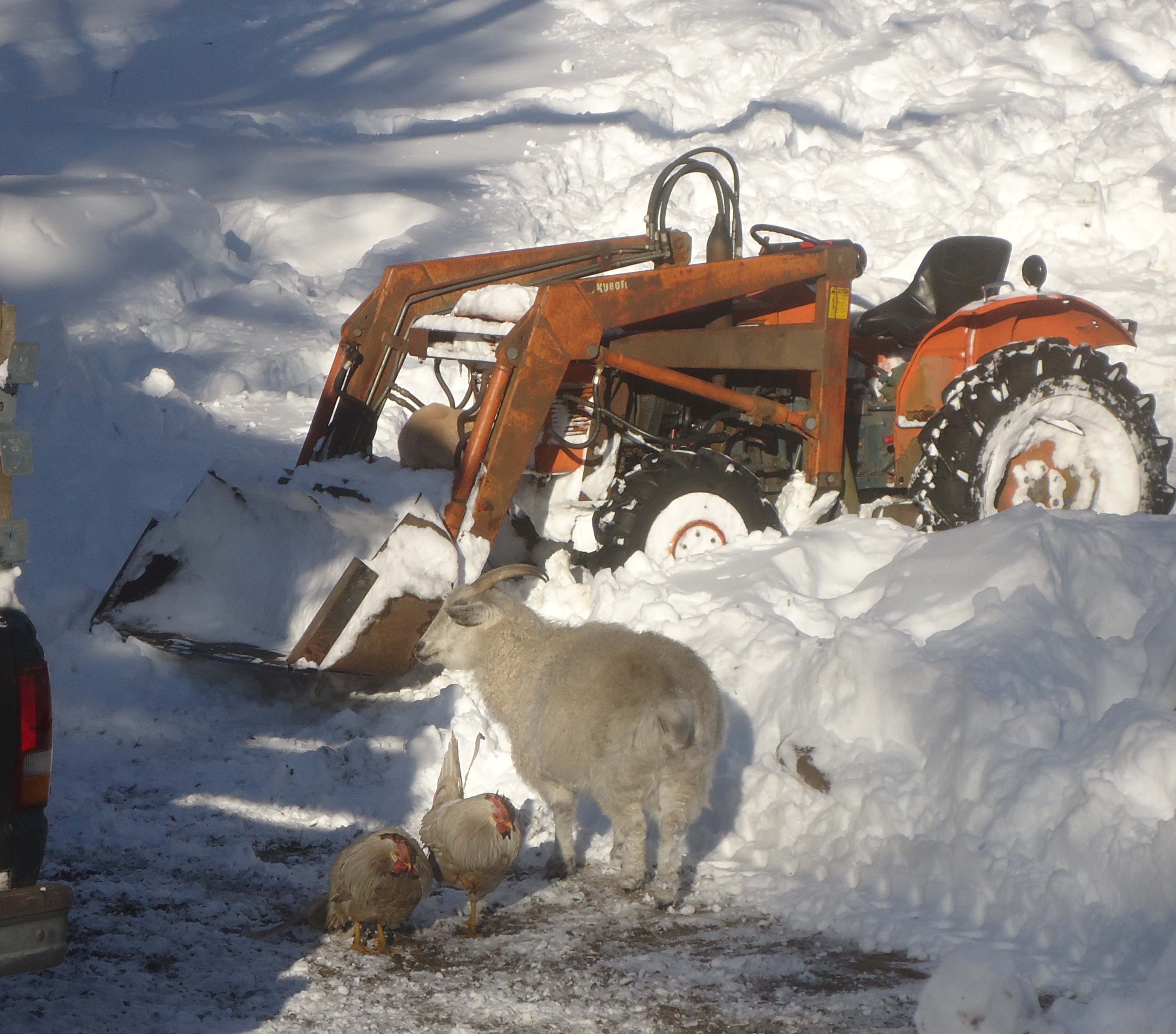 Meghan working hard trying to give the dogs some extra room, though they were loving a good romp in the snow! (have to say.. having able bodied teenagers is a real plus after a blizzard on a farm!)