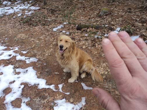 For the past week or so, I’ve been working with Mal to bring his training to the next level. Our plans are to mold some of our Retrievers into working game dogs, so, starting with Mal, I’ve started working with him on the sit, stay, come commands “notched up” a bit. My first goal is to solidify these commands in varied situations then move on to molding his retrieving play abilities (which he already loves and simply cannot get enough of) into reliable working abilities. For starters, he needs to obey commands no matter where he is; whether he is near me or far away. On command (which is a whistle blow), he must stop and sit exactly where he is: